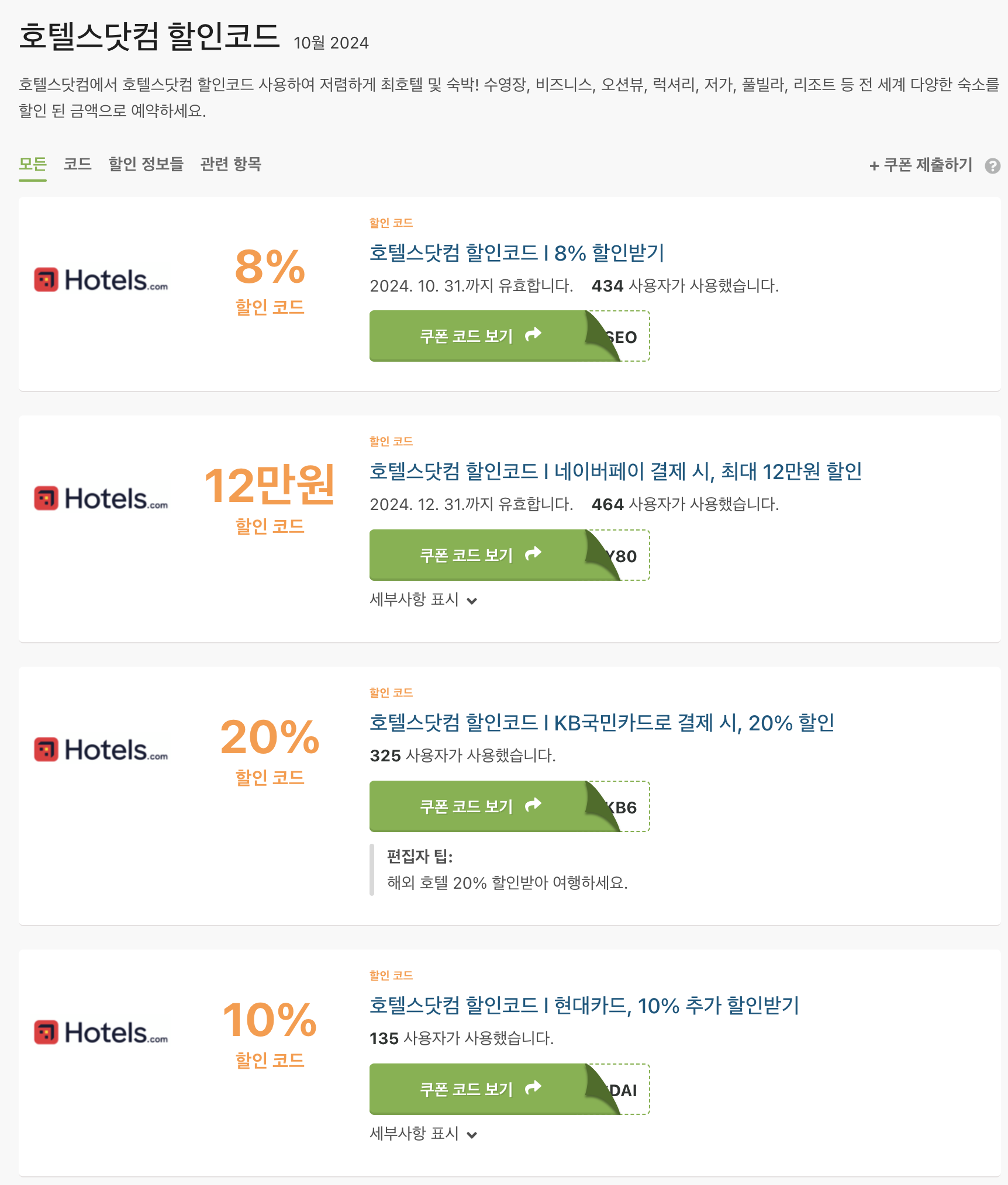 여행을 계획하고 계신가요? 호텔 예약 전 꼭 할인 쿠폰과 프로모션을 확인하세요! 조금만 신경 쓰면 똑같은 숙소를 더 저렴하게 이용할 수 있답니다. 오늘은 호텔스닷컴의 할인 혜택들을 정리해보았습니다.