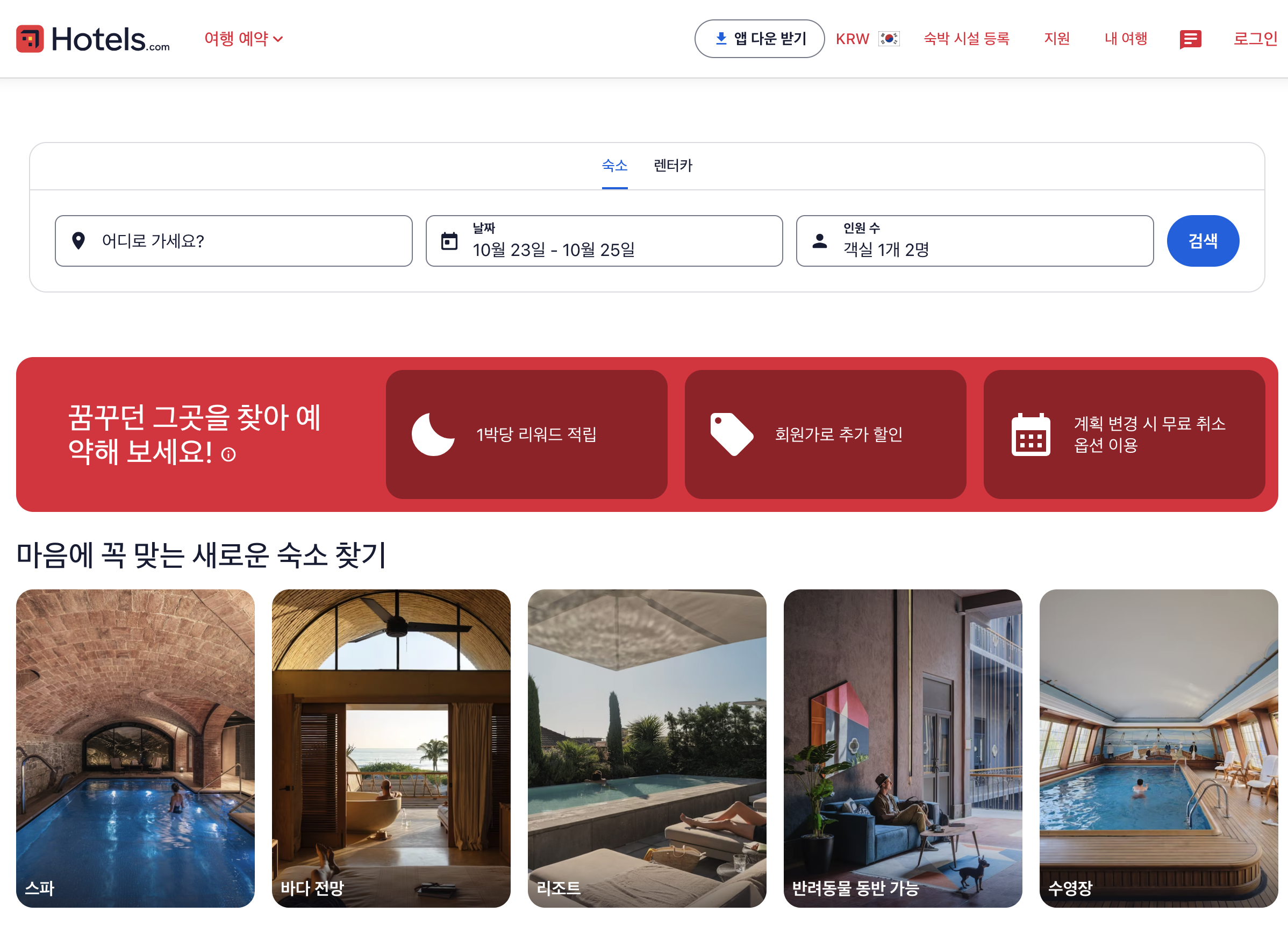 호텔스닷컴(https://kr.hotels.com/)은 전 세계 수십만 개의 숙박시설을 예약할 수 있는 글로벌 온라인 여행사입니다. 독립 호텔부터 대형 체인 호텔, 아파트, 리조트까지 다양한 숙박 옵션을 제공합니다. 특히 10박을 예약하면 1박을 무료로 제공하는 리워드 프로그램으로 유명합니다.