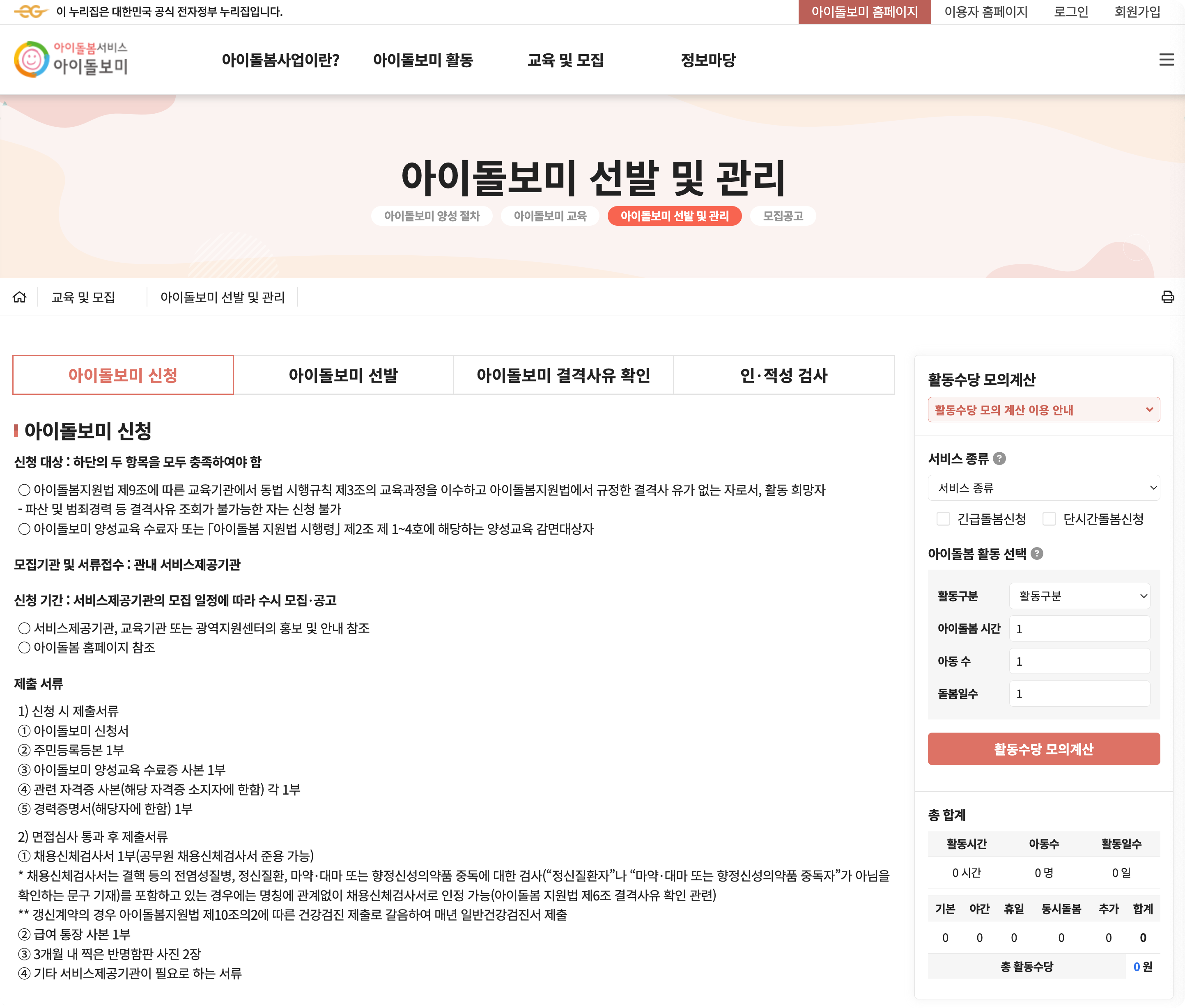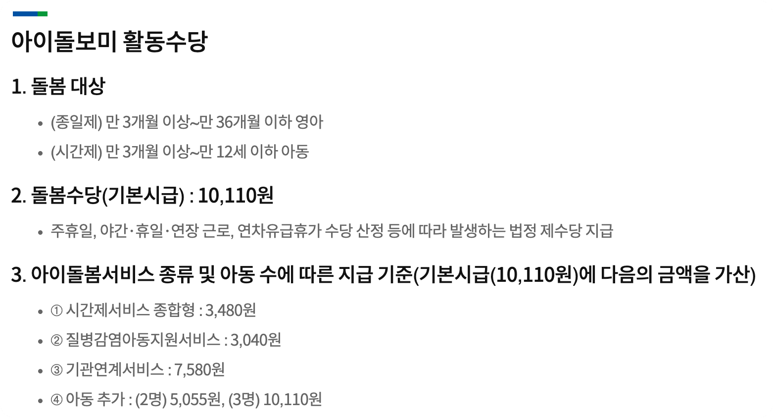 아이돌보미 활동수당