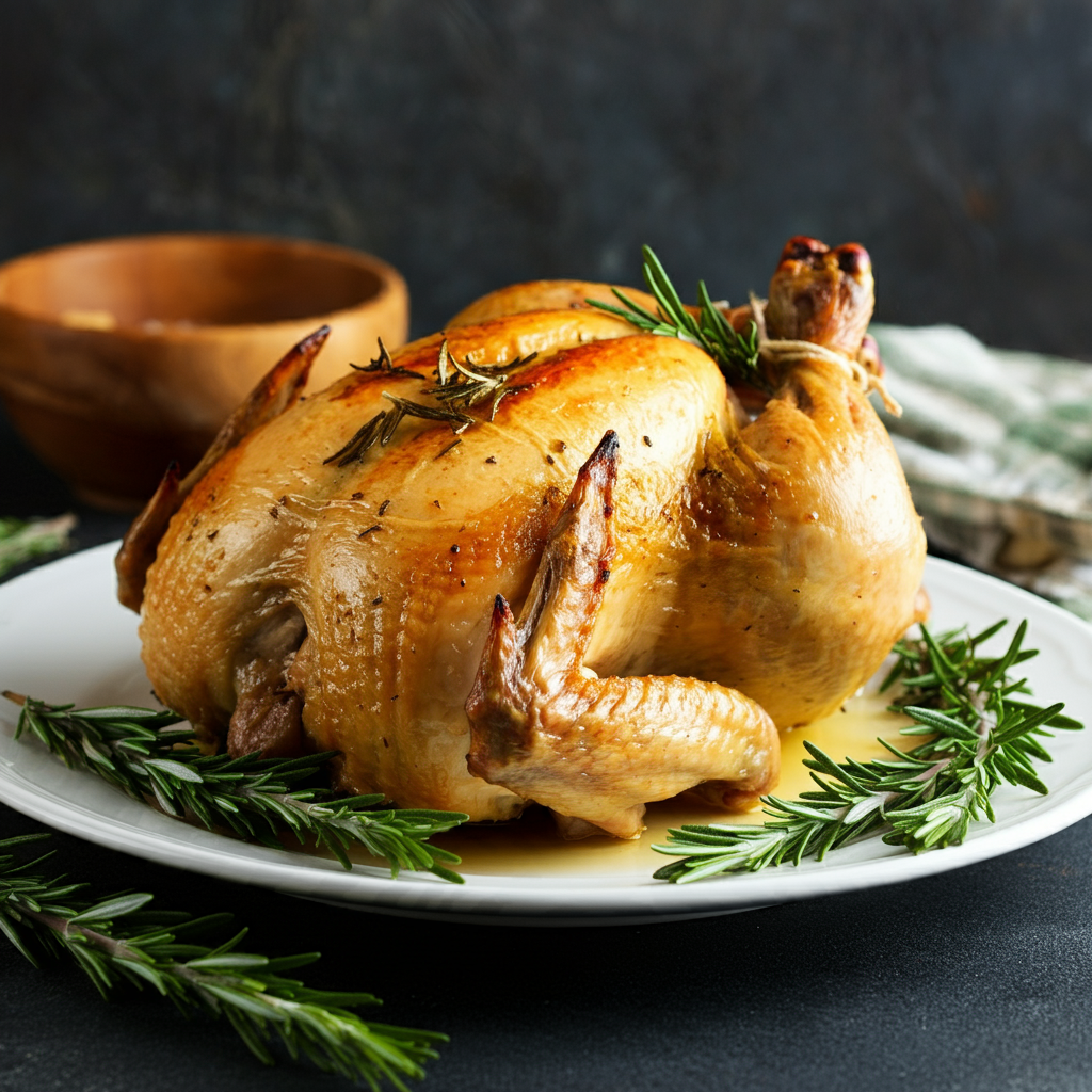 크리스마스 식탁의 중심이 될 로스트 치킨 레시피를 소개합니다. 향긋한 로즈마리와 갈릭의 풍미가 어우러진 이 요리는 보기에도 먹음직스럽고 맛도 일품입니다.